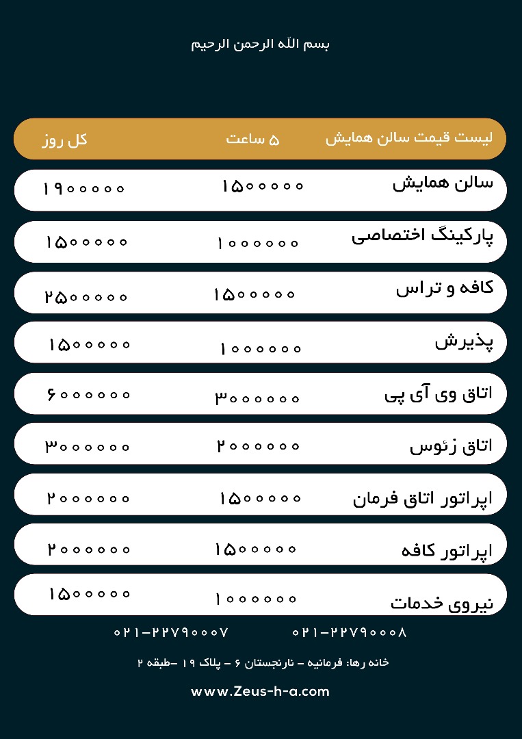 اجاره سالن همایش ، با امکانات اتاق vip و کافه ، تراس ، اتاق فرمان و …